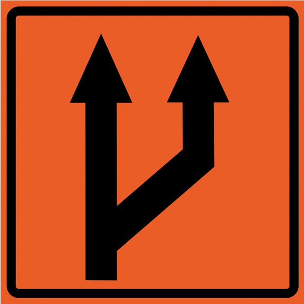 תמרור מספר הנתיבים בכביש הולך וגדל מימין