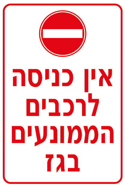 שלט אין כניסה לרכבים הממונעים בגז