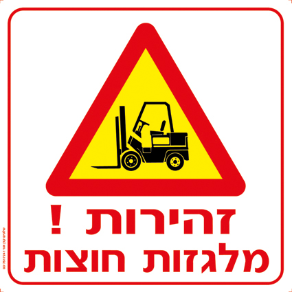 מדבקת זהירות! מלגזות חוצות