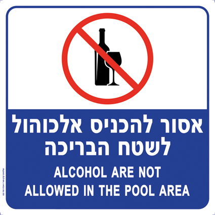 שלט אסור להכניס אלכוהול לשטח הבריכה