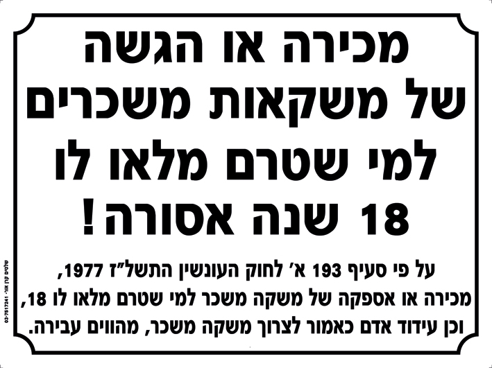 מכירה או הגשה של משקאות משכרים למי שטרם מלאו לו 18 שנה אסורה