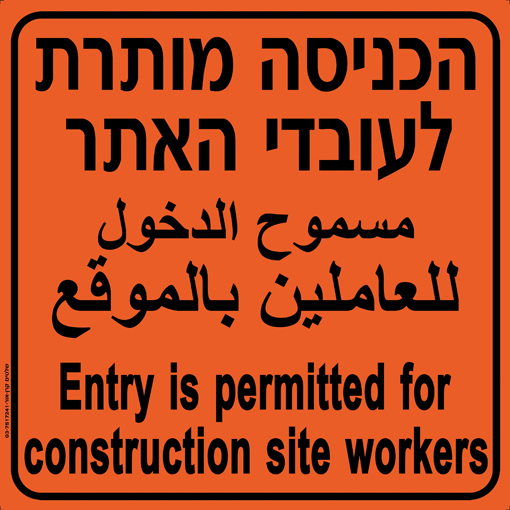 תמרור הכניסה לעובדי האתר בעברית ,ערבית ואנגלית