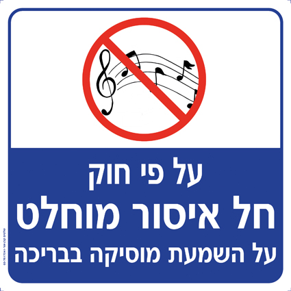 שלט על פי חוק חל איסור מוחלט על השמעת מוסיקה בבריכה