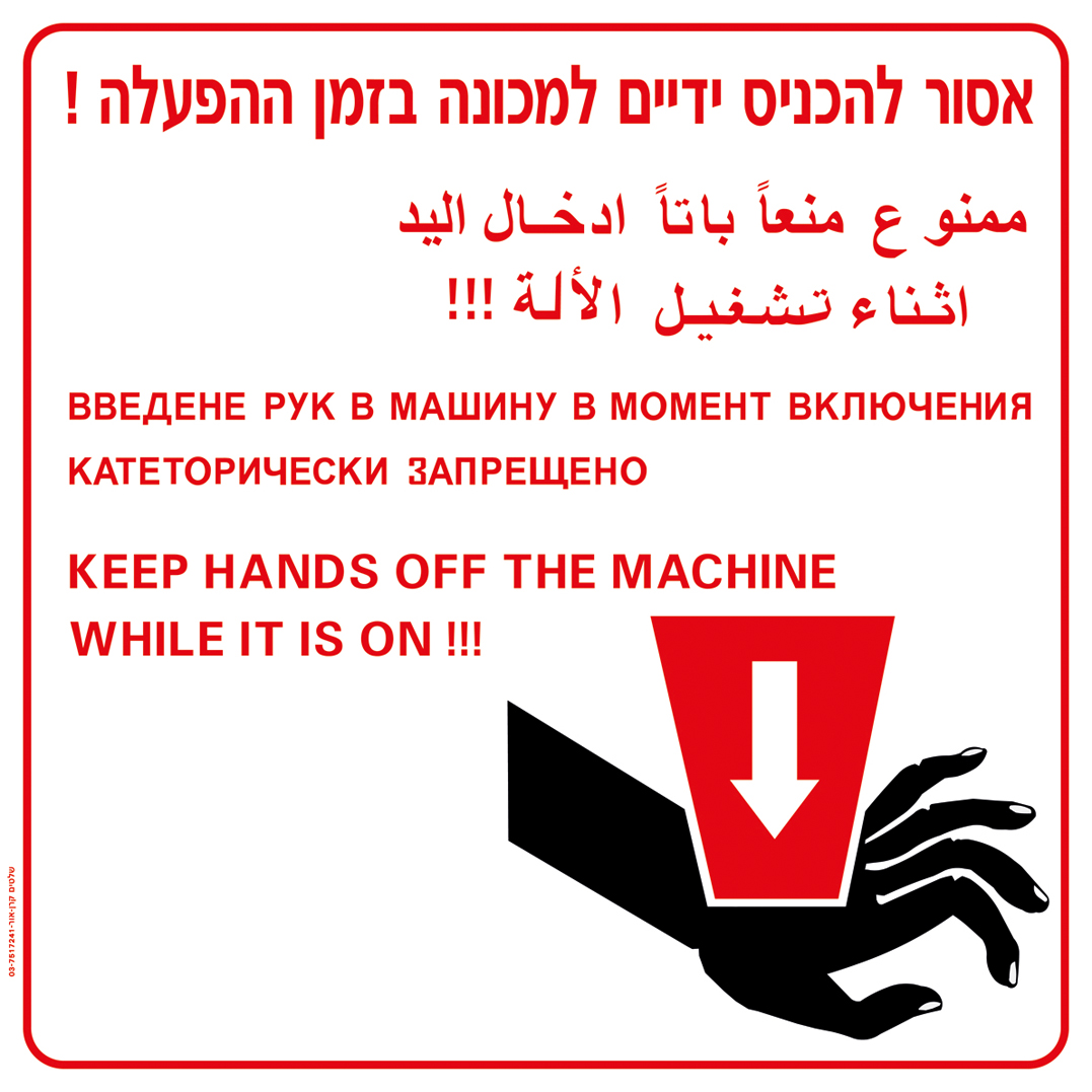 אסור להכניס ידיים למכונה בזמן ההפעלה!