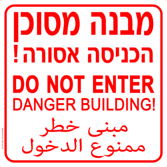 מבנה מסוכן הכניסה אסורה בעברית אנגלית וערבית