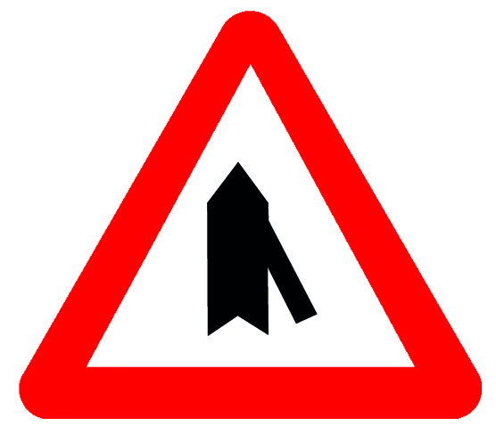תמרור התמזגות של כביש עם דרך צדדית מימין