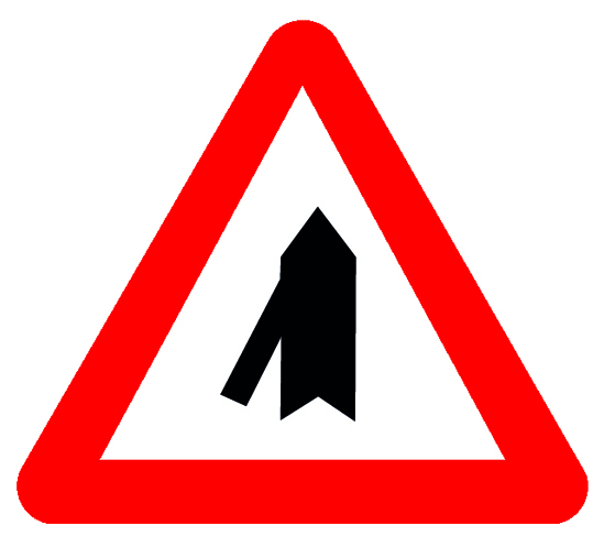 תמרור התמזגות של כביש עם דרך צדדית משמאל