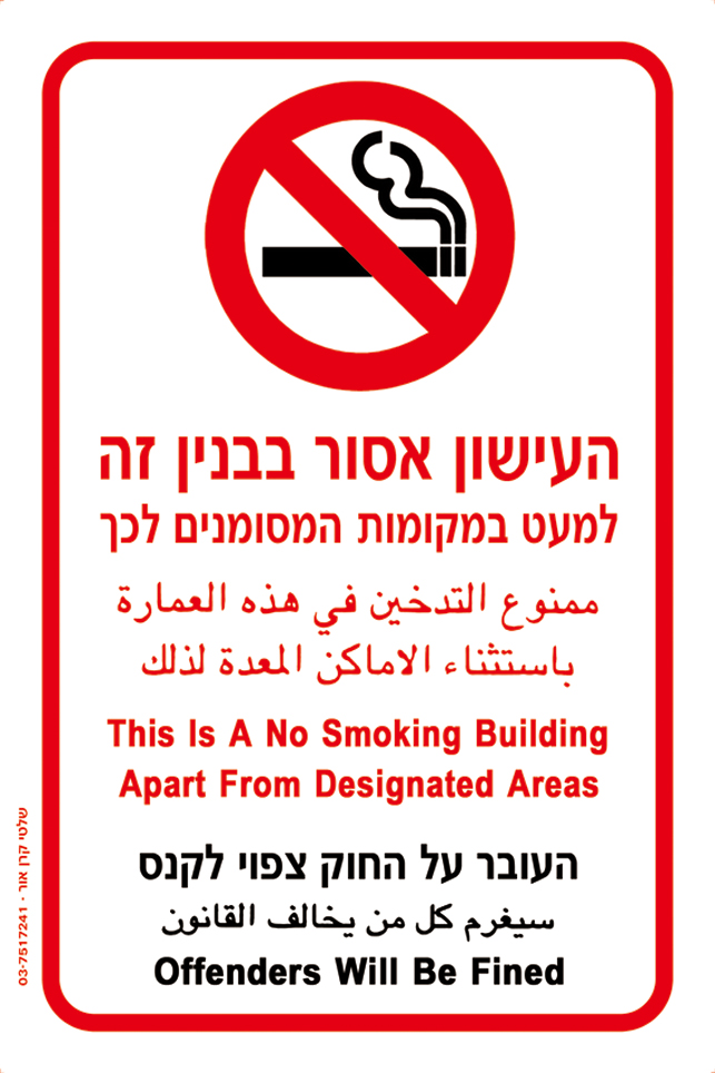 העישון אסור בבנין זה למעט במקומות המסומנים לכך