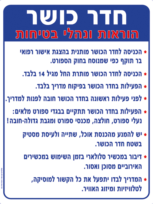 שלט חדר כושר הוראות ונהלי בטיחות
