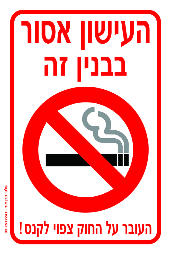 העישון אסור בבנין זה העובר על החוק צפוי לקנס