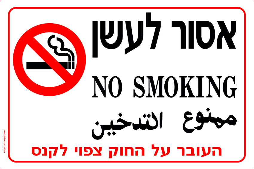אסור לעשן no smoking העובר על החוק צפוי לקנס