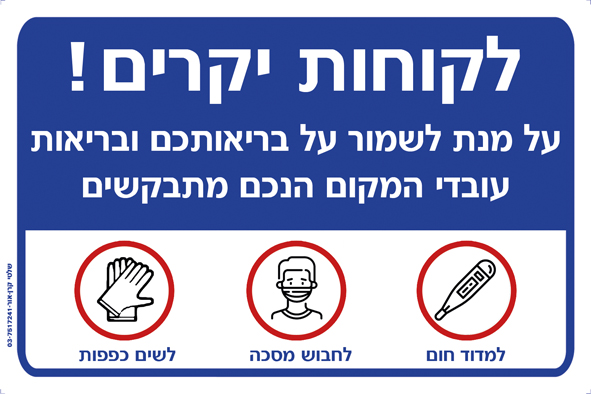 לקוחות יקרים על מנת לשמור על בריאותכם ובריאות עובדי המקום הנכם מתבקשים למדוד חום לחבוש מסכה ולשים כפפות