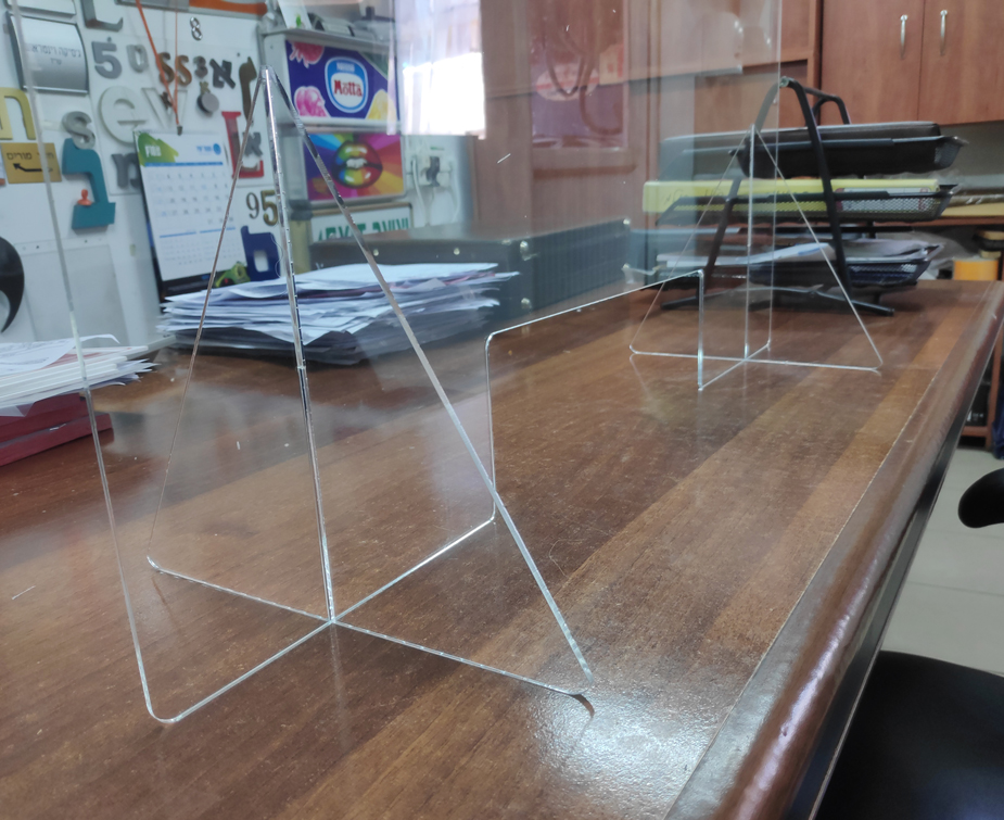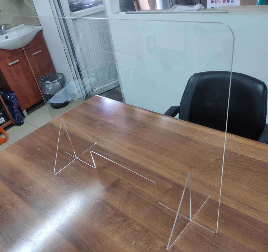 מחיצת פרספקס שקופה לשולחן במשרד/עמדת פקיד שיש להם אינטראקציה יומיומית עם לקוחות או אורחים