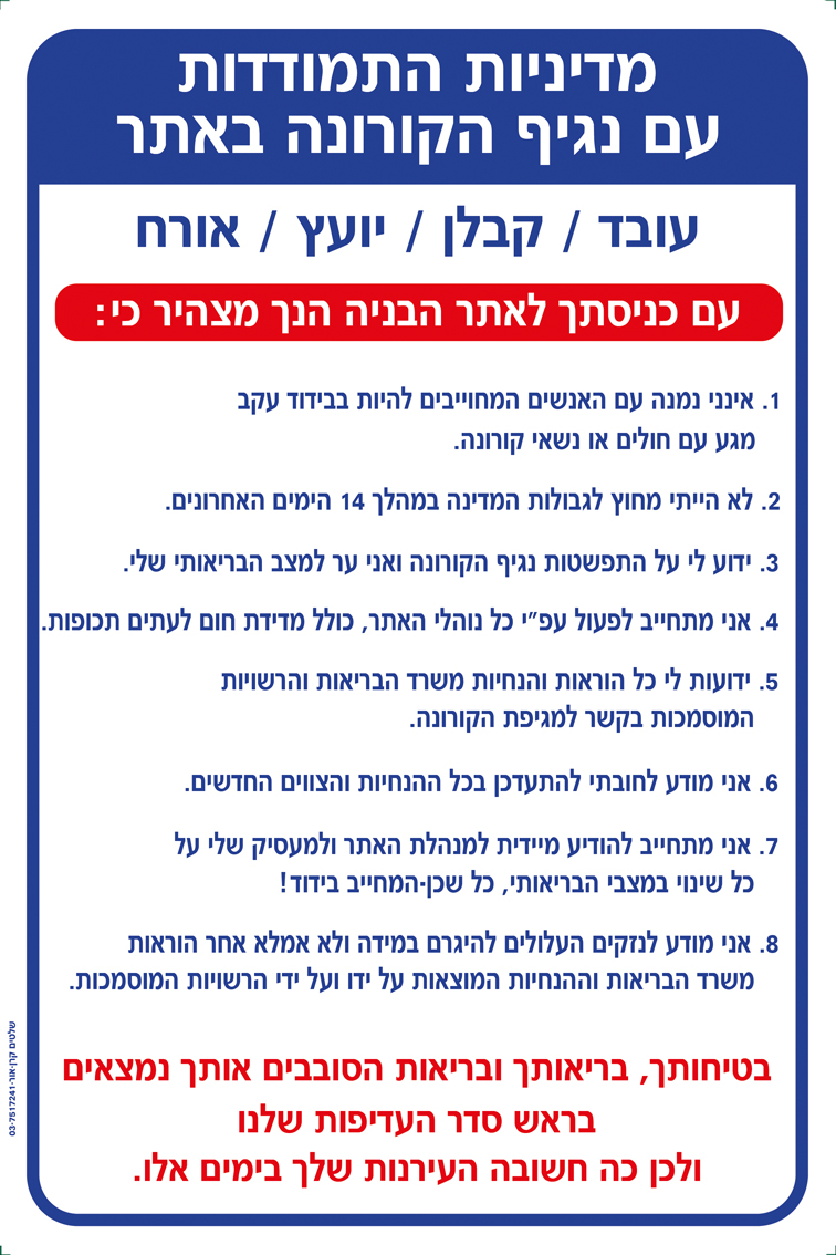 מדיניות התמודדות עם נגיף הקורונה באתר