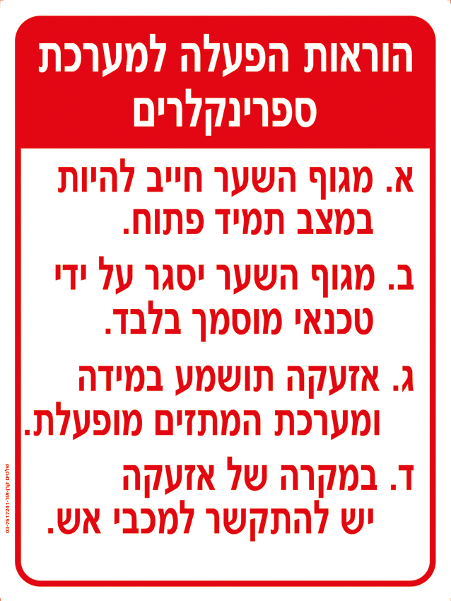 הוראות הפעלה למערכת ספרינקלרים- מפח