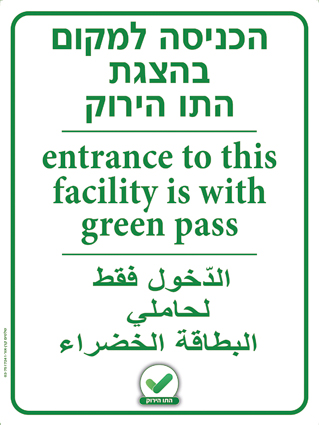 הכניסה למקום בהצגת התו הירוק ב- 3 שפות
