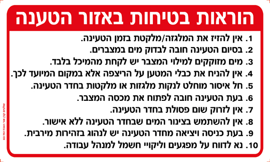 הוראות בטיחות באזור הטענה