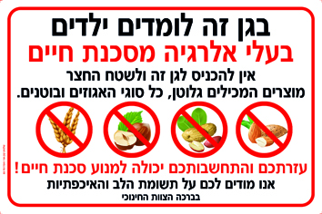 שלט לגן לבעלי אלרגיה למוצרים המכילים גלוטן, אגוזים ובוטנים