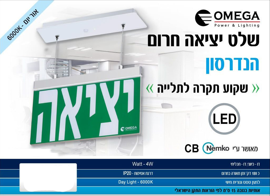 שלט יציאה מואר דו כיווני שקוע תקרה לתלייה