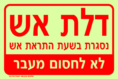 דלת אש נסגרת בשעת התראת אש לא לחסום מעבר
