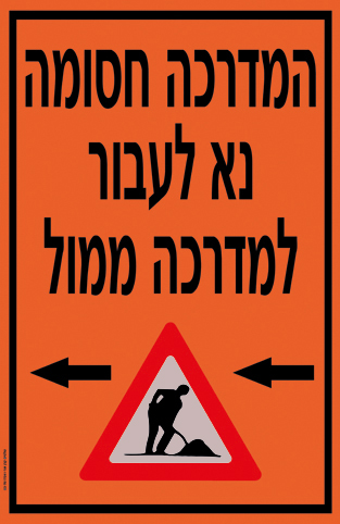 המדרכה חסומה נא לעבור למדרכה ממול עם חץ שמאלה