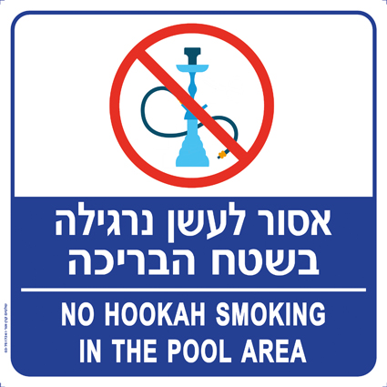 שלט אסור לעשן נרגילה בשטח הבריכה