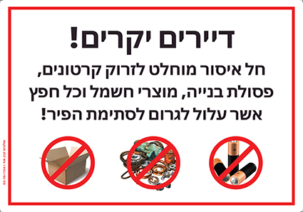 שלט הנחיות השלכת סוגי אשפה בפיר הדחסנית