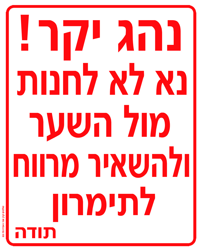 נהג יקר נא לא לחנות מול השער ולהשאיר מרווח לתימרון