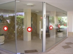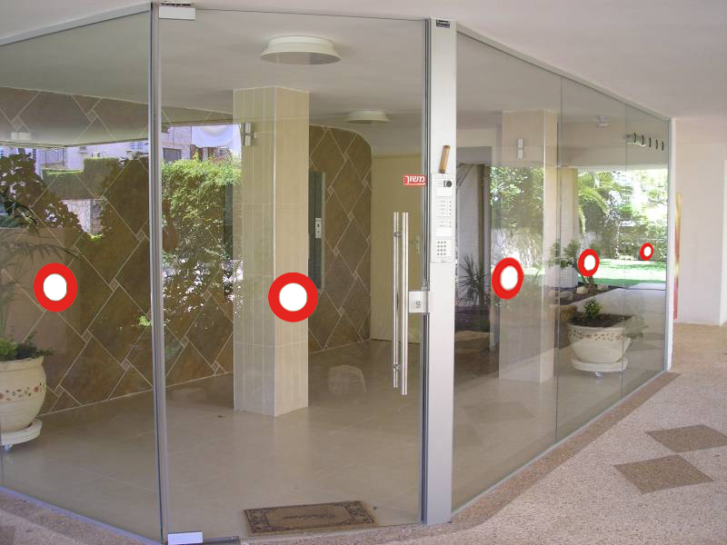 מדבקות עגולות לסימון אזהרה בויטרינות ודלתות זכוכית-אדום לבן