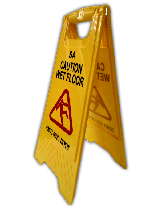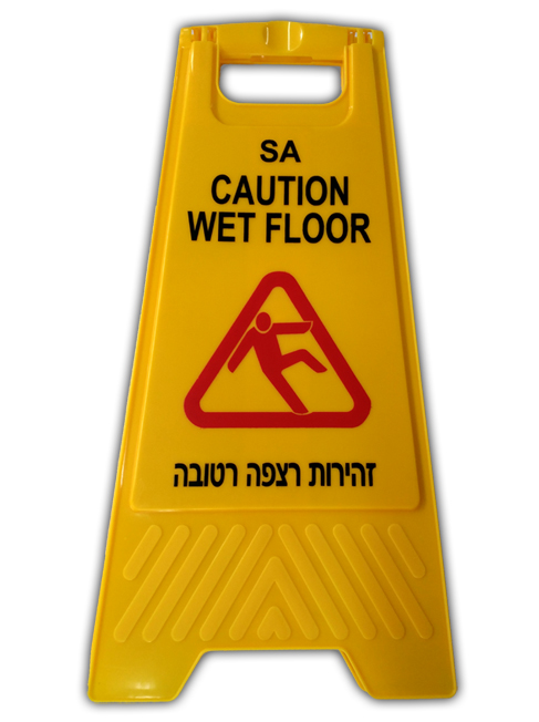 שלט חובה בזמן שטיפת הרצפה,חדרי שרותים,וכן במקומות עם מים.