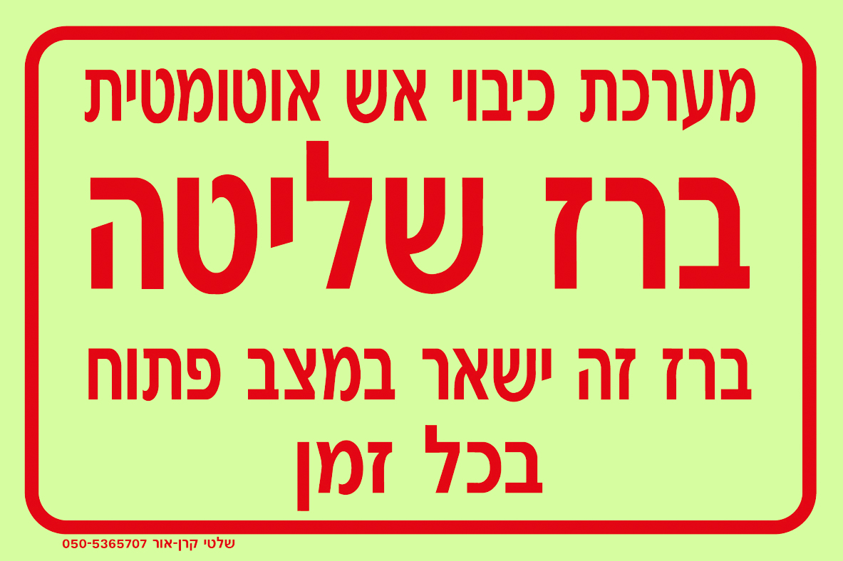 מערכת כיבוי אש אוטומטית ברז שליטה ברז זה ישאר במצב פתוח בכל זמן
