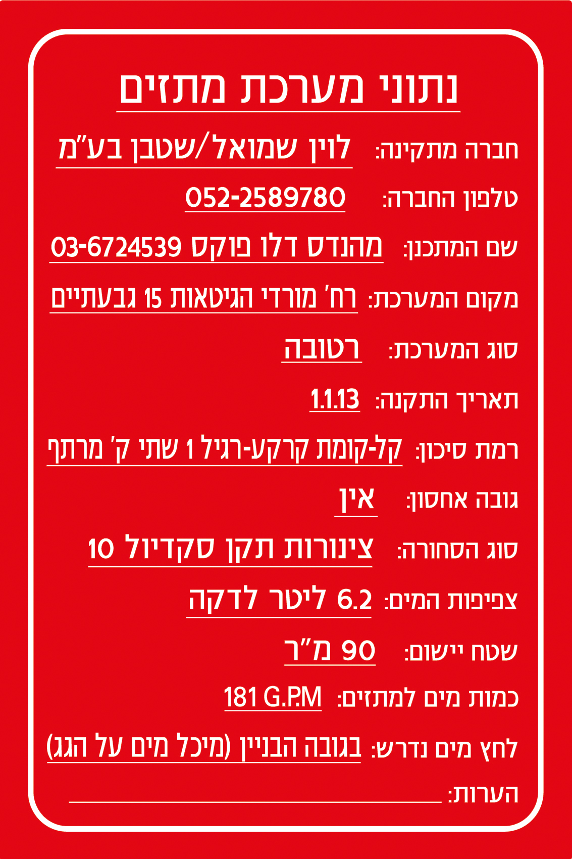 נא לציין את כל הפרטים שצריך למלא בשלט