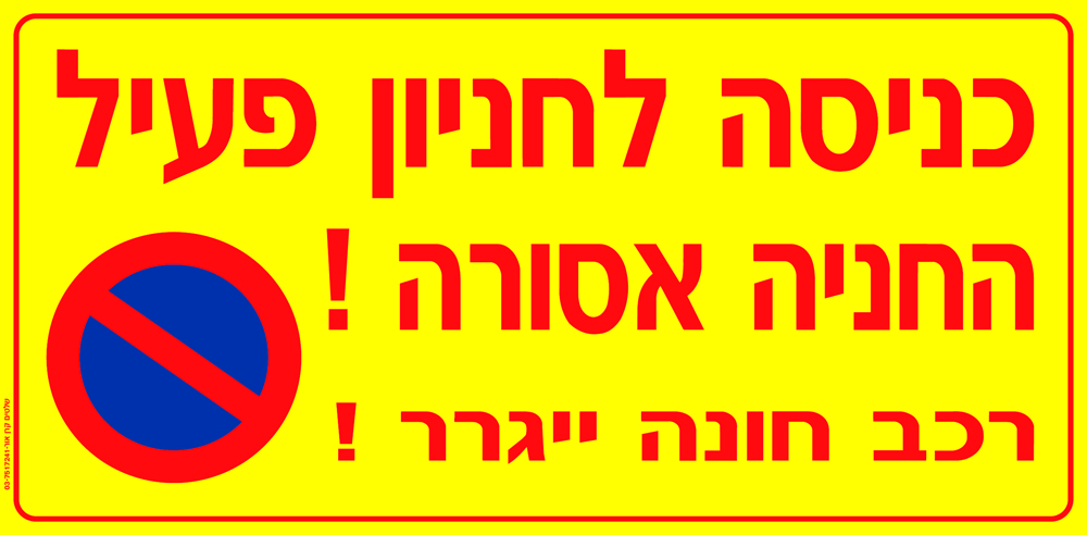 כניסה לחניון פעיל החניה אסורה! רכב חונה ייגרר!