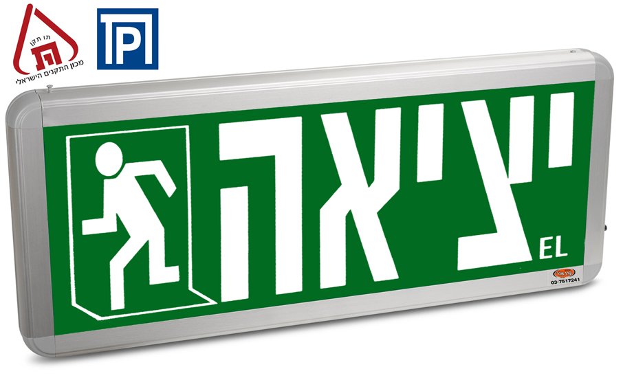 שלט יציאה תאורת חירום דקורטיבי דו תכליתי עם תו תקן מיועד לחניונים ולחללים גדולים